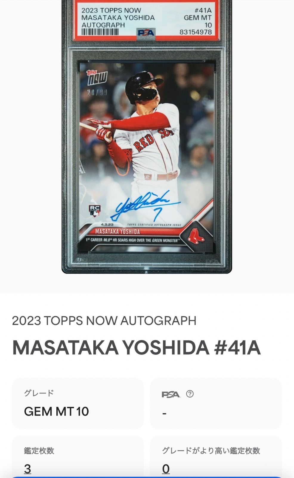 | メーカー | 1枚限定級✨吉田正尚 直書きサイン×実着用ゲームユニホーム★MLB認証付き |
